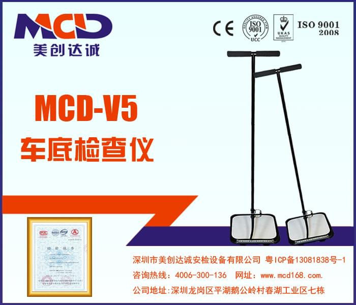 MCD-V5是美創(chuàng)達誠安檢設(shè)備有限公司推出的一款非常受歡迎的車底安全檢查鏡,30CM超大方形凸面鏡,大功率高亮白光LED燈,可充電電池。經(jīng)濟便攜,簡單明了,帶三個支撐活動的輪子,推動輕便,桿子活動范圍大,適用于不同角度的空間,是一款被廣泛應(yīng)用于檢查車子、桌子、凳子等底部是否有異常的安檢工具。