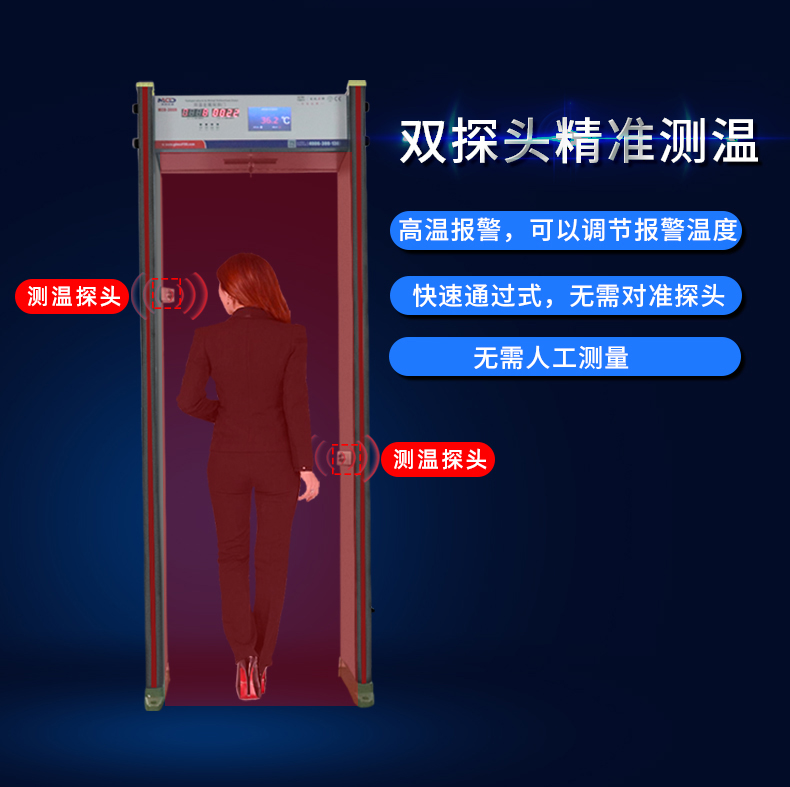 快速測(cè)溫金屬探測(cè)門,測(cè)溫加金屬探測(cè)集成一體