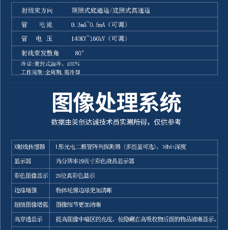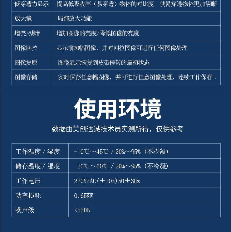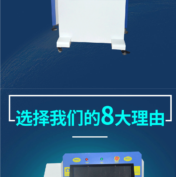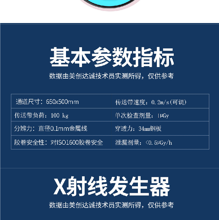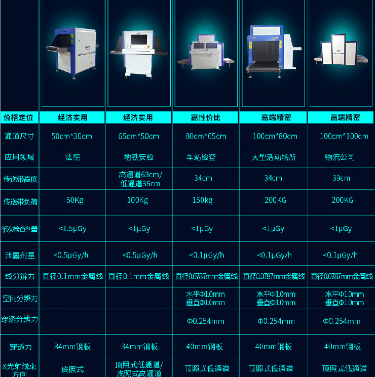 用于射線穿透檢查,可發現物體內部的金屬結構,能顯示肉眼看不到地方。應用于工廠檢驗產品及事業單位的安檢如:電子廠、鞋廠、玩具廠,法院、車站、以及大型活動的手提包的安檢。