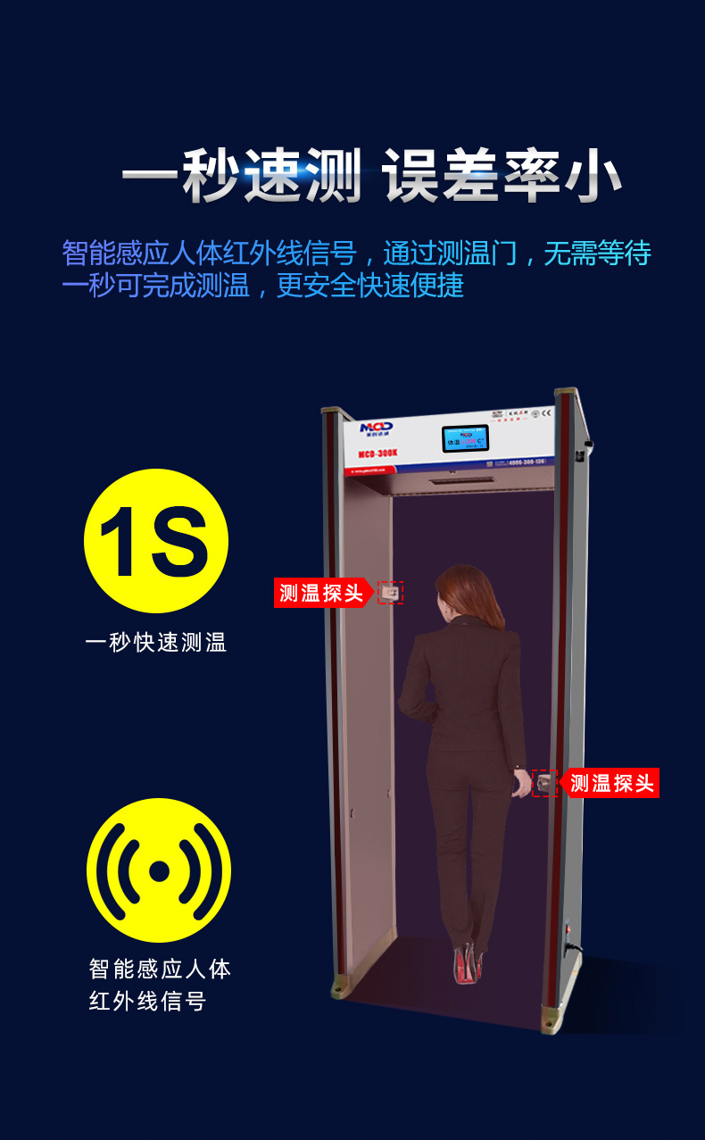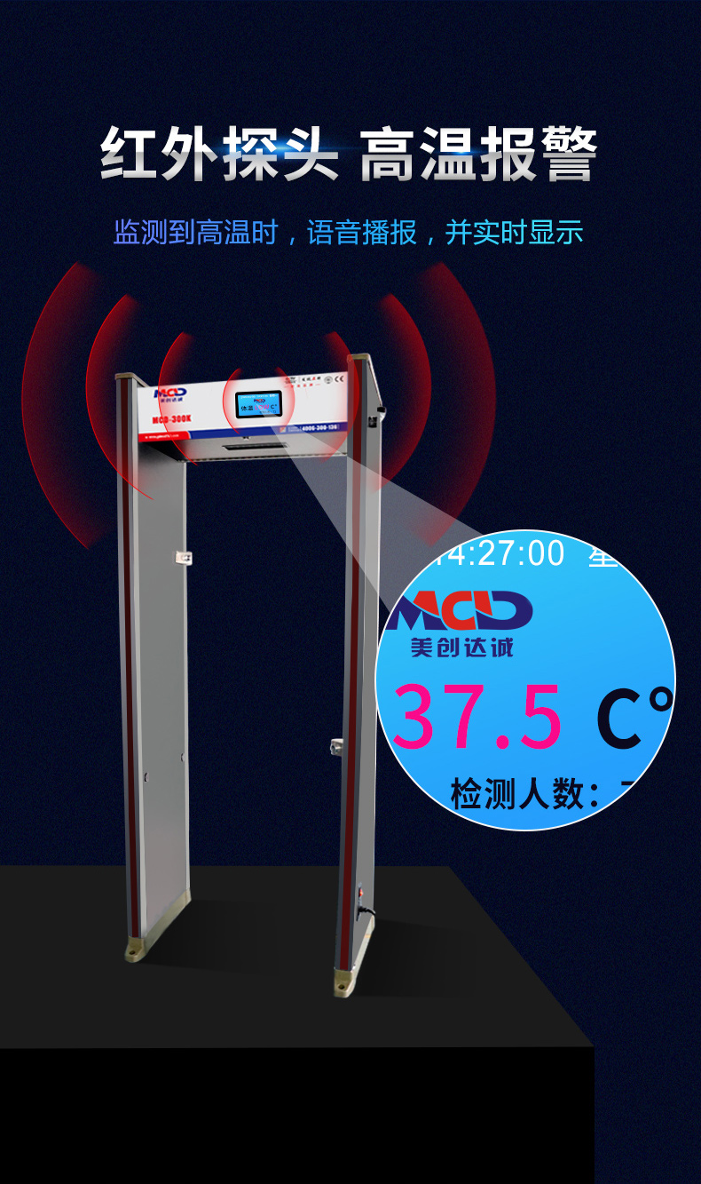 美創達誠廠家人體測溫門通過式精準安檢門測溫批發MCD-300K