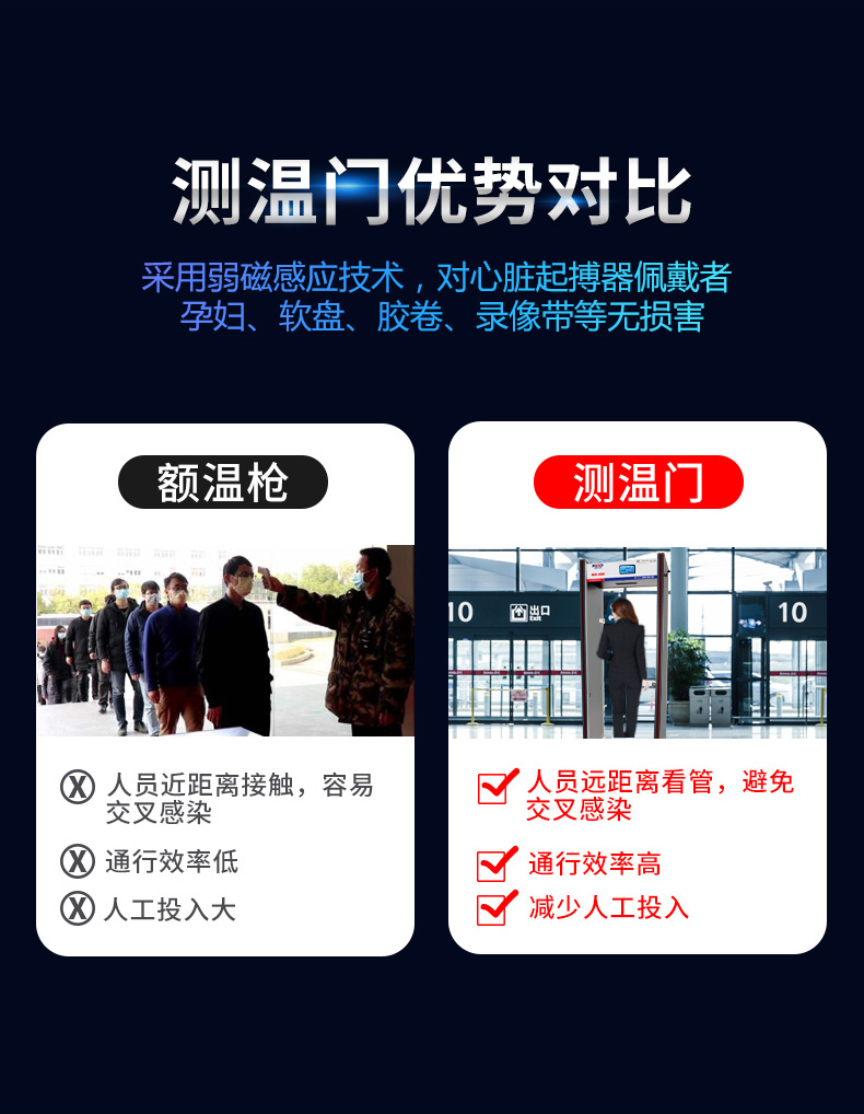 快速通過人體測溫門,適合于學校,車站人流多需要快速檢測體溫的公共場所