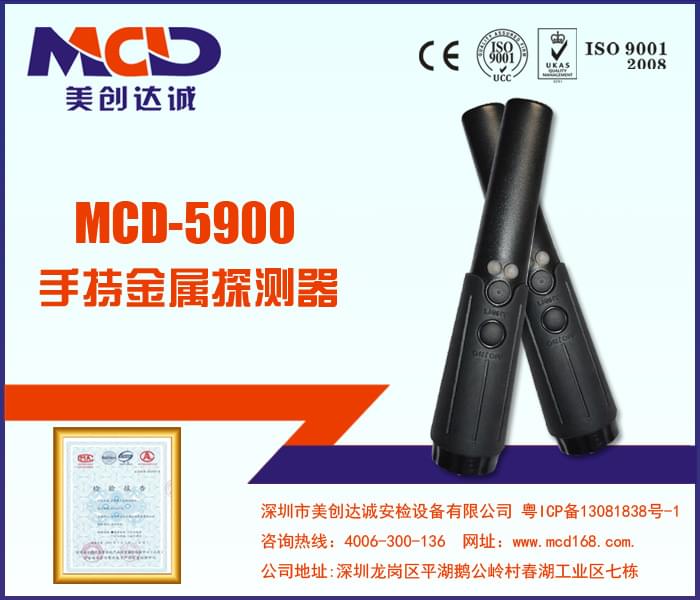 MCD-5900手持式金屬探測器,它是一款專為檢測槍支、刀具等違禁物品的專業探測器。完全符合電子電氣和健康安全標準及GA、CE檢測,它有無聲LED燈指示和振動報警兩種模式。有著其它探測器無可比擬的優異性能。使得它在探測細小金屬物體時有效。LED燈指示金屬物體的所在位置,反應探測器的操作狀態和電池的使用信息。產品自帶的頭部LED燈,在黑暗和光線不足的情況下,有幫助。