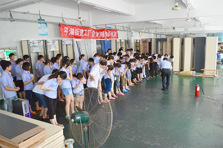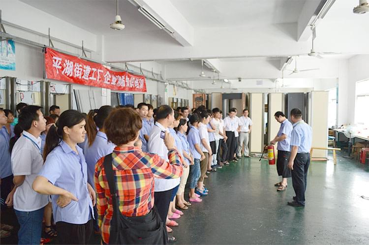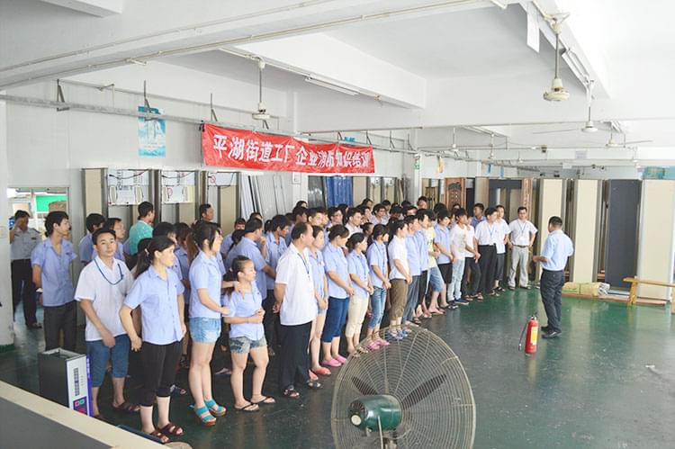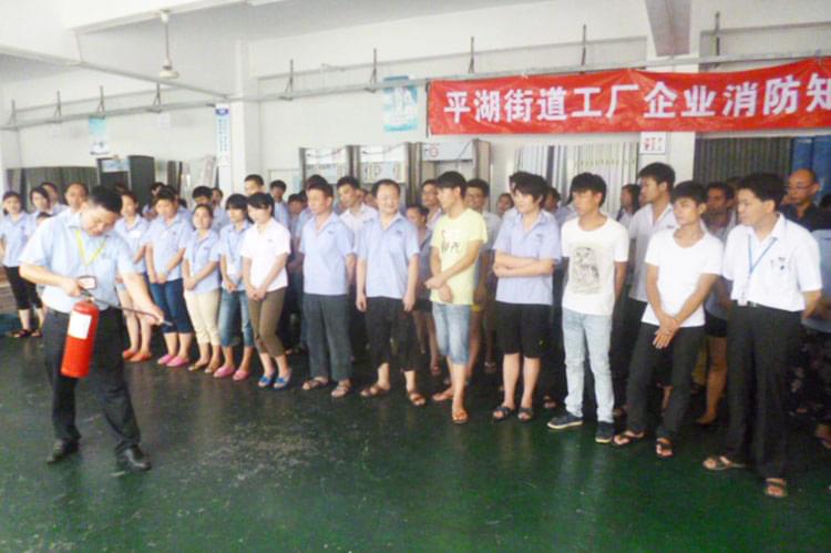 此次安檢消防知識培訓演示由深圳龍崗區平湖街道消防部舉行,主要講解兩會及安全撤離現場技巧.廠里100余多名員工參加了此次安檢消防知識培訓.