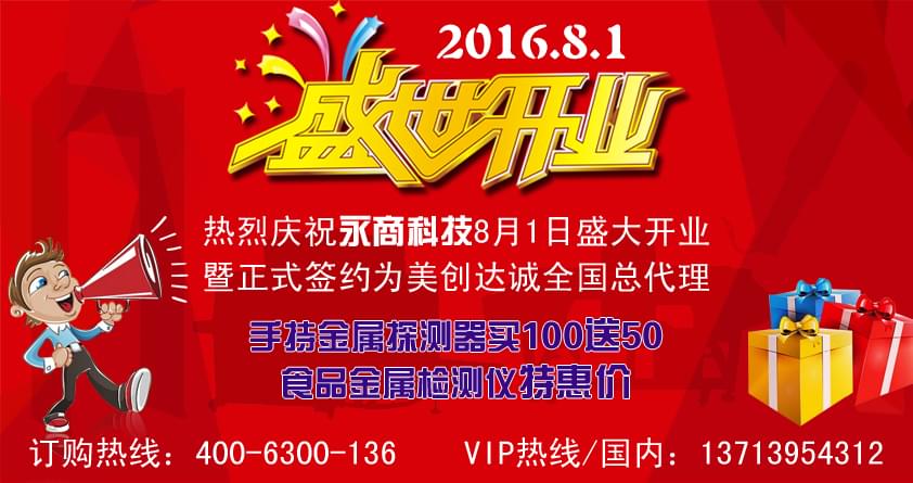 深圳市永商科技有限公司正式掛牌運(yùn)營,同日簽約成美創(chuàng)達(dá)誠總代理,營業(yè)期間,凡在本公司訂購手持金屬探測器100支,送50支。