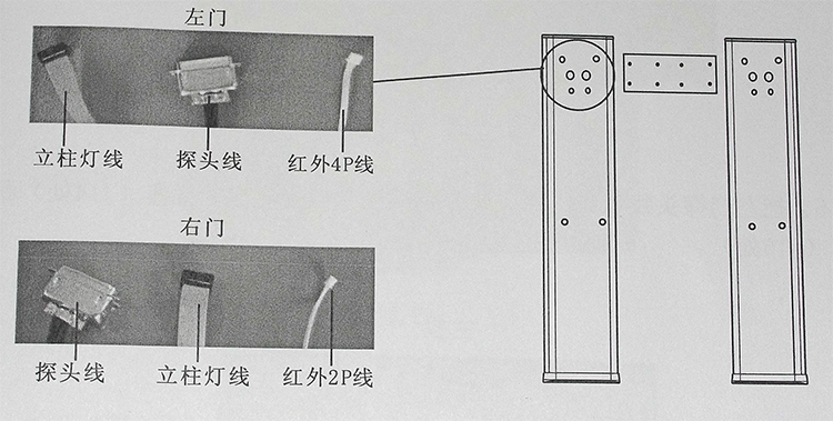 3、把左門紅外探頭 4P 線和右門紅外 2P 線分別插到主機箱控制數碼板上對應的插座(J6 處)和(J7 處)。如下圖