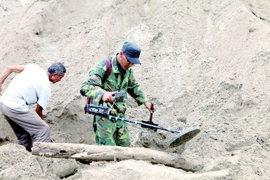 記者看到,鏟子、鋤頭、鐵鍬這些挖寶工具都不算新鮮的,更甚者還有人帶來了專業的金屬探測儀,在不斷盯著地面尋找。