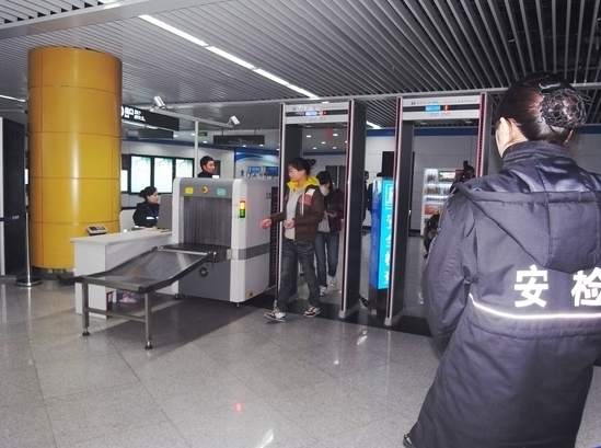 安檢門會自動報警,安檢人員再根據具體情況用“手持安檢器”對其復查,嚴禁違禁物品被帶入地鐵。