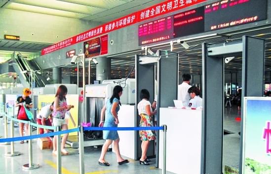 除了對每名旅客隨身攜帶的物品、箱包進(jìn)行機(jī)器監(jiān)測外,還像機(jī)場一樣采用安檢門、手持金屬探測器對全身進(jìn)行檢查。安檢通道旁則設(shè)置了專門的手檢臺和處置臺。